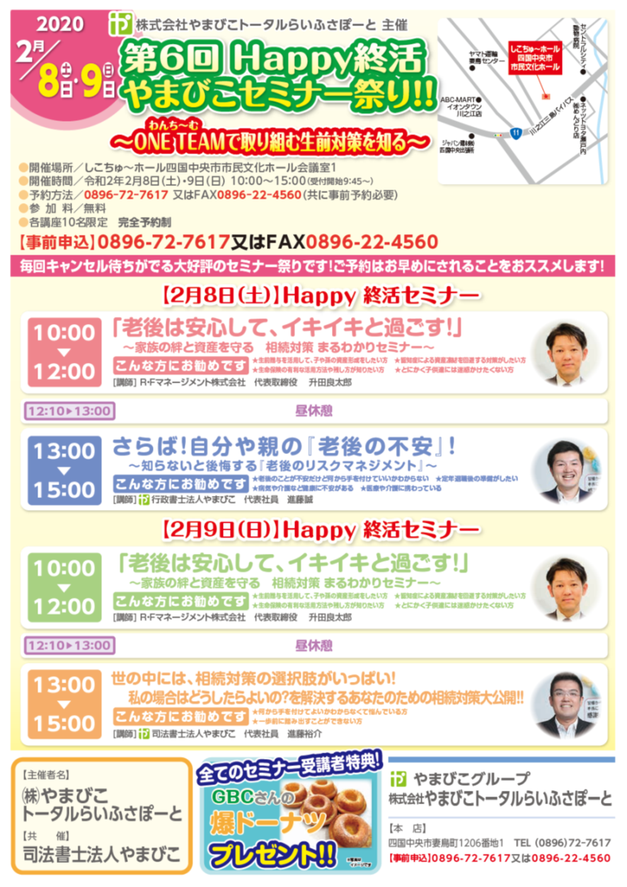 2月8日、9日の二日間、愛媛県四国中央市で相続セミナーを行いました。